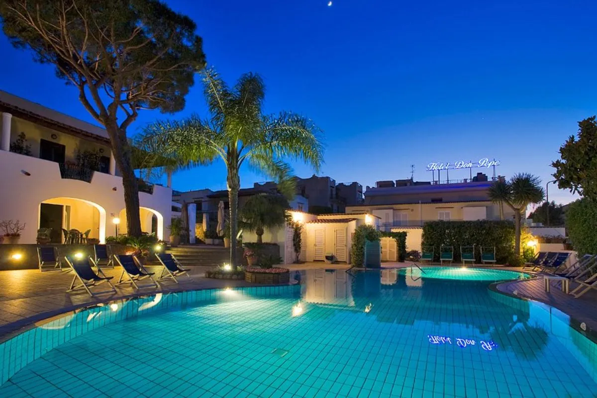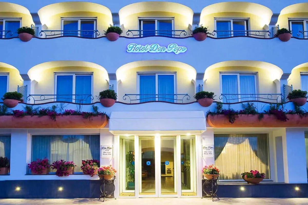L’Hotel Terme Don Pepe è una raffinata struttura ricettiva 4 stelle situata nel comune di Lacco Ameno a pochi passi dal mare e dal centro. L’edificio si caratterizza per un’elegante architettura e per uno stile d’arredo ispirato al Settecento veneziano, che dona all’hotel un’atmosfera distinta e suggestiva, ideale per una vacanza dal fascino fiabesco e dai tratti regali.