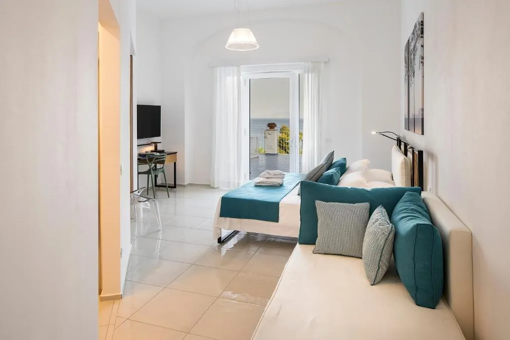 - Junior Suite Aphrodite Vista Mare: circa 40 mq, massimo 4 persone, composte da due ambienti ampi e luminosi