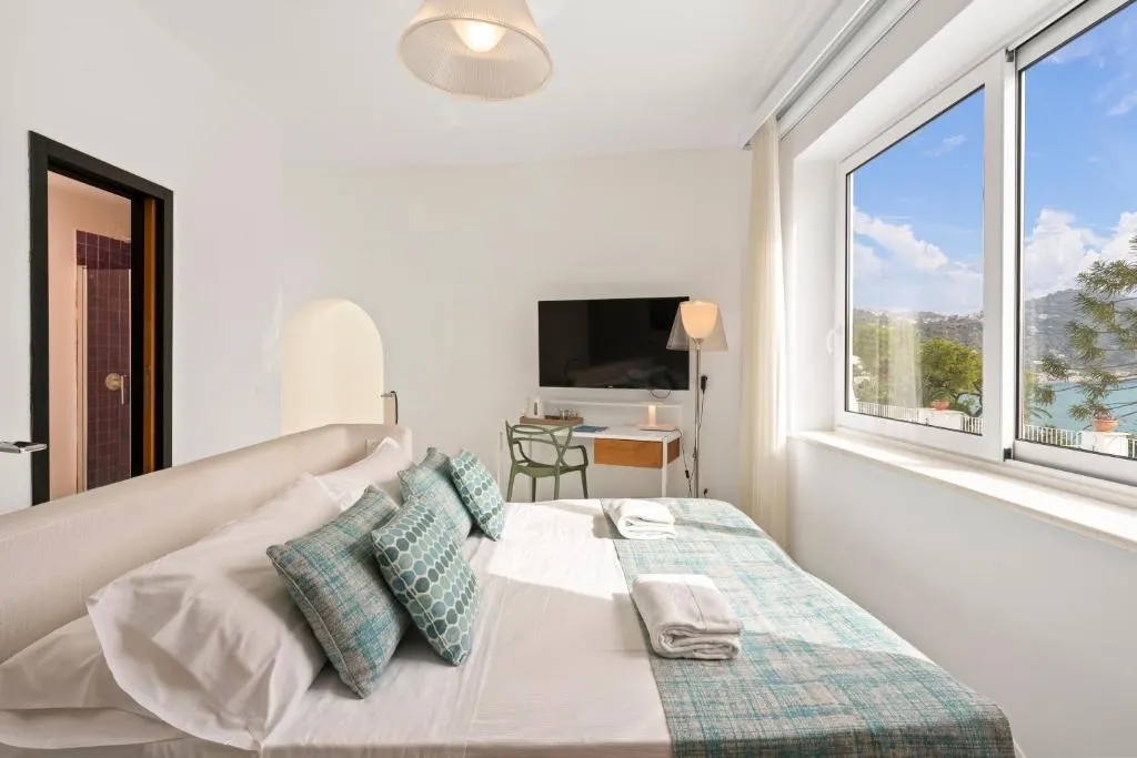 Le camere sono eleganti e spaziose, tutte dotate di servizi privati, TV a schermo piatto, aria condizionata, frigobar, cassaforte, Wi-Fi gratuito, asciugacapelli, balcone o terrazzo con vista panoramica.