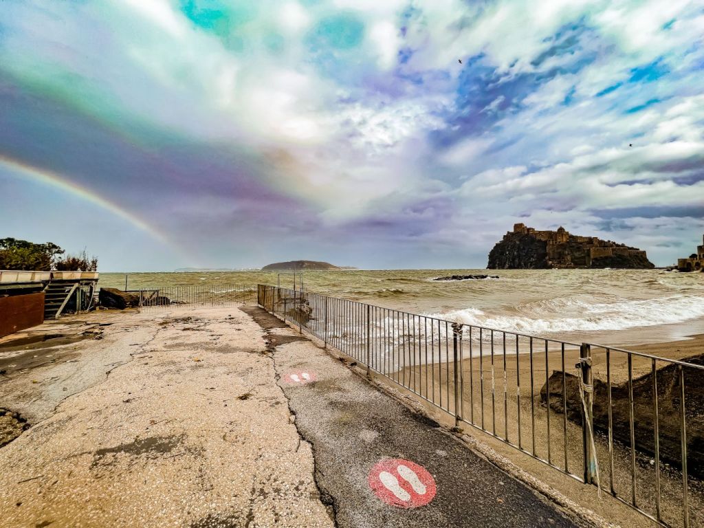 Un arcobaleno in lontananza è apparso oggi dopo le pesanti piogge che si sono abbattute sulla nostra isola.Un arcobaleno, un piccolo segno di speranza.