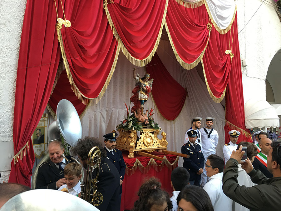 La sera il Santo viene riportato sempre in processione ma stavolta via mare, partendo dal porticciolo lungo un percorso che va fino a Sorgeto e alla Baia dei Maronti, accompagnato da musica e fuochi d’artificio.